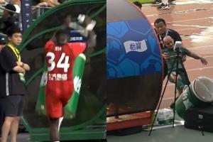 而在2023年中超有過幾乎一樣的案例,2023年6月29日,中超第13輪,上海海港客場2-1擊敗北京國安,比賽第57分鐘,上海海港外援伊薩·卡隆在被替換下場后,用腳踢壞替補(bǔ)席旁的冰桶。之后中國足協(xié)開出罰單,卡隆被停賽1場、罰款人民幣1萬元。