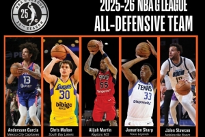 體育資訊4月8日訊 今天,G聯(lián)盟官方公布了2025-26賽季的最佳防守陣容,分別是: