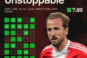 據(jù)Sofascore統(tǒng)計(jì),凱恩本賽季為拜仁出戰(zhàn)41場比賽,打進(jìn)49球,僅10場比賽未破門,從未連續(xù)3場比賽無進(jìn)球。