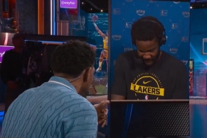 體育資訊4月10日訊 NBA常規賽,湖人119-103輕取勇士。賽后艾頓與哈斯勒姆連線并接受了采訪。