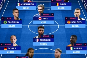 中場:庫蒂尼奧(250萬)、阿里(100萬)、巴卡約科(50萬)、德烏洛費烏(20萬)