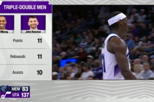 刷爽了!爵士貝茲·姆本和康查爾同時達成三雙 后者連續(xù)兩場三雙