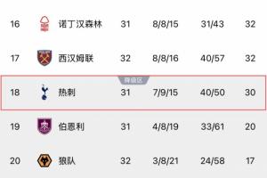 體育資訊04月11日訊 英超第32輪,西漢姆聯先賽4-0大勝狼隊,暫時逃離降級區,而熱刺則以2分劣勢落入降級區,本輪必須客勝桑德蘭才能提升排名。