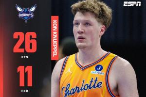 全場克尼佩爾出場36分鐘,14中9,三分10中6,罰球4中2,砍下26分11板8助,正負值+15。