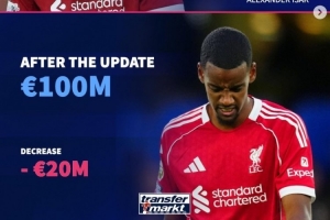 德轉更新后列身價下跌球星:伊薩克、貝林領銜 薩卡、巴斯托尼在列