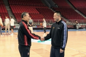 上午的踩場訓練中,場邊發生有趣的一幕,北京男籃主帥許利民和上海男籃主帥盧偉寒暄,他說道:“你們現在太猛了,拿第一了啊。”