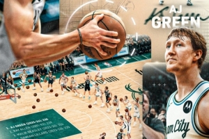 此役,雄鹿球員AJ·格林出戰36分18秒,投籃16中7,三分14中5,得到19分5板1助1斷,正負值-23。