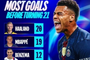 體育資訊4月14日訊 歐冠官方統(tǒng)計(jì)了U21球員的歐冠歷史進(jìn)球情況,哈蘭德力壓姆巴佩居首。