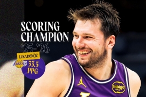 湖人官推曬海報祝賀東契奇再奪得分王 成湖人隊史第五位得分王!