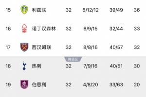 此戰過后,利茲聯積36分排名英超第十五,已經高出降級區的熱刺6分,在僅剩6輪的情況下保級形勢一片大好。