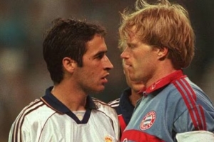 卡恩是21世紀(jì)初皇馬與拜仁交鋒的核心人物,這位門將從不回避對抗,做客伯納烏時更是如此。2000年首回合落敗后,他放話激怒拜仁球迷:“拜仁能對陣任何西班牙球隊轟進(jìn)五球,皇馬會見識到,也會大吃一驚。” 最終阿內(nèi)爾卡的頭球破門,擊碎了拜仁的決賽夢想。