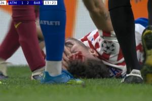 體育資訊04月15日訊 歐冠1/4決賽次回合,馬競vs巴薩,第69分鐘,魯杰里被加維肘擊,倒地滿臉是血,加維染黃!