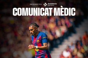 拉菲尼亞已返回巴塞羅那,開始接受相關治療。預計康復期為五周。