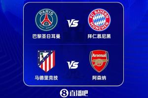 半決賽對陣隨之敲定,巴黎將先主后客迎戰拜仁,馬競則先主后客對決阿森納。兩回合角逐將于4月29日-30日及5月6日-7日凌晨展開。