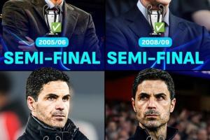阿爾特塔追平了溫格在阿森納的歐冠半決賽次數(shù)??