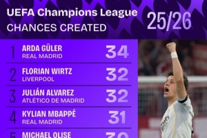 本賽季歐冠創造機會榜:居萊爾34次居首,維爾茨、小蜘蛛32次