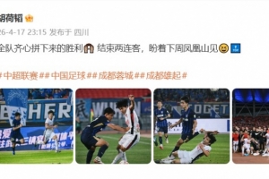 體育資訊4月17日訊 中超聯賽第6輪,成都蓉城客場1-0擊敗武漢三鎮,繼續領跑積分榜。