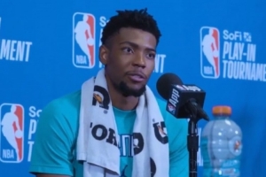 體育資訊4月18日訊 在今天結束的一場附加賽中,黃蜂以90-121不敵魔術。賽后,黃蜂球員布蘭登·米勒出席了新聞發布會。以下是完整版采訪內容。
