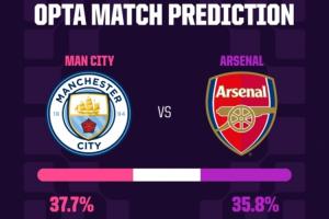 體育資訊04月18日訊 北京時間明天23:30,英超第33輪榜首大戰曼城主場迎戰阿森納。賽前數據機構Opta預測本場比賽的結果。