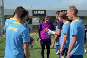 巴薩門將什琴斯尼迎來36歲生日,今日訓練之前,隊友們列成兩排,以拍打儀式為他慶生。