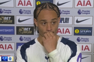 體育資訊4月19日訊 熱刺在本輪英超2-2遭布萊頓絕平,取得進(jìn)球的哈維·西蒙斯在賽后接受采訪被問及相關(guān)話題。