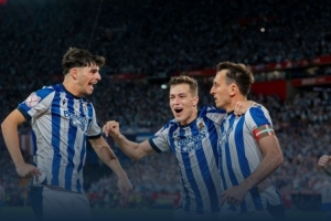 體育資訊4月19日訊 國王杯決賽,皇家社會點球大戰擊敗馬競,捧起冠軍獎杯。