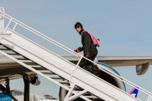 全新體驗!開拓者登機照 楊瀚森背著粉色書包 開啟首次季后賽之旅
