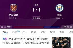 你想到了嗎?一個月前曼城1-1西漢姆落后9分,此后兩輪凈追6分!