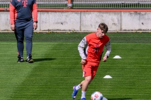 卡爾正在進行有球訓練。為了做好準備,這位進攻型中場在周一——球隊休息日,也是在奪冠后的第二天——在康復教練本杰明·索默的指導下,于塞貝納大街的訓練基地進行了一次額外的訓練。上午10點03分,卡爾精神抖擻地踏上了球場。在30分鐘的訓練中,這位德國國腳在訓練中肌肉拉傷11天后,首次能夠進行帶球練習。這位進攻天才在恢復跑步兩天后,就已經能夠繞著迷你錐進行帶球訓練了。隨后,他進行了多次不同速度的跑步練習,并進行了穩定性訓練。