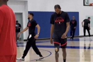 G2能否復出?杜蘭特參加火箭訓練加練投籃 右膝貼滿護具