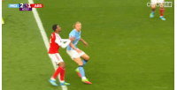 比賽第84分鐘,哈蘭德和加布里埃爾爭頂后倒地,哈蘭德起身后推了加布里埃爾一下,而加布里埃爾用頭頂了哈蘭德,主裁判向兩人各出示一張黃牌。有媒體表示,如果當時哈蘭德被對方頭頂之后順勢倒地,加布里埃爾就會吃到紅牌。