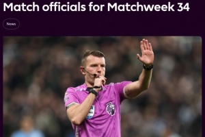 英超第34輪裁判:巴羅特執(zhí)法阿森納vs紐卡,安迪·馬德利執(zhí)法曼城