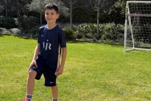 巴斯克斯社媒曬出孩子身穿維尼修斯贈送的球衣的照片,配文:“非常感謝維尼修斯,我們愛你。”