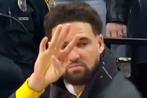 曾效力于德克薩斯大學(xué)的杜蘭特在INS上曬出了克萊“四根手指”表情包,慶祝母校晉級(jí)四強(qiáng)。