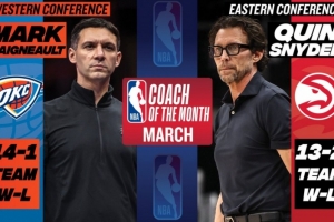 戴格諾特三月份率領雷霆取得14勝1負戰績;斯奈德率領老鷹取得13勝2負戰績。