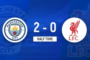 傷停補時2分鐘。上半場比賽結(jié)束,曼城2-0利物浦。
