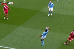 體育資訊04月04日訊 足總杯1/4決賽,曼城坐鎮主場對陣利物浦,比賽第28分鐘,皮球即將出邊線,塞梅尼奧熟練撈球秀了一手。