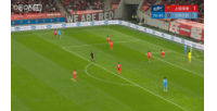 比賽第77分鐘,武磊面對出擊到禁區外的鮑亞雄,右腳推射稍稍偏出↓