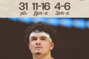 本場(chǎng)桑托斯打出生涯之夜,35分鐘16投11中,三分6中4、罰球8中5砍下生涯新高31分外加3籃板1助攻2搶斷1蓋帽,也有5失誤,正負(fù)值-6。