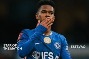 此役埃斯特旺傳射建功,幫助藍(lán)軍取勝,切爾西官方宣布,他當(dāng)選本場(chǎng)比賽隊(duì)內(nèi)最佳球員。
