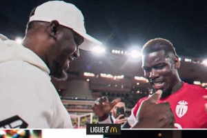 博爾特現場觀戰摩納哥比賽,并與博格巴擁抱寒暄