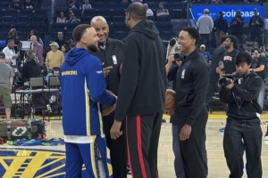 昔日黃金搭檔!火勇對決賽前 杜蘭特與庫里互動相談甚歡